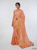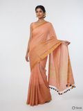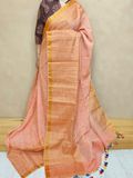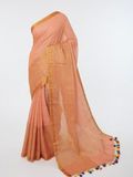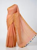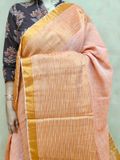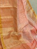 The lower half of the saree features subtle golden zari stripes that add a soft shimmer, while the pallu carries matching zari detailing for a refined, cohesive look. Simple yet sophisticated, this saree pairs beautifully with minimal or statement accessories for a versatile, timeless style.