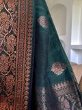 Experience timeless elegance with this Linen Base Banarasi Saree, exquisitely woven with rich copper zari that adds a warm, luminous sheen. The natural linen base offers unmatched comfort and breathability, while the intricate Banarasi weaving lends a touch of regal artistry. Graceful, lightweight, and effortlessly sophisticated, this saree blends tradition with modern ease—perfect for festive occasions, intimate celebrations, or daytime elegance.