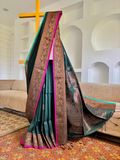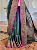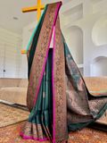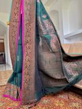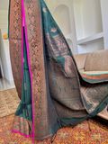 Copper Zari Weave: Warm metallic sheen that elevates the traditional Banarasi craftsmanship.