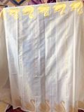 - Striped golden pattern and duck motifs on borders