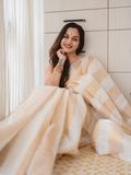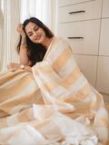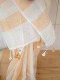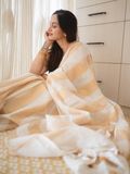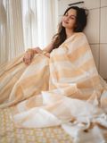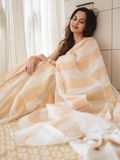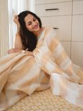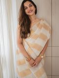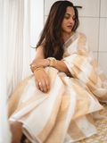 Linen kasavu saree, designed with vertical kasavu stripes running gracefully from start to end, creating a refined, elongated silhouette.