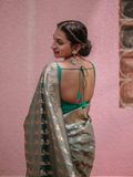 - Design - Handwoven silver zari patterns throughout the saree with Classic Banarasi motifs inspired by traditional craftsmanship