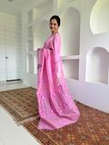 Fabric: Muslin–Linen–Silk blend (lightweight, breathable, soft sheen; easy drape)